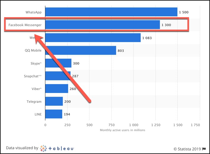 First off, we can point to some big numbers — like the fact that according to Statista, there are 1.3 billion Facebook Messenger users, not to mention millions more on Facebook’s other messaging platforms.