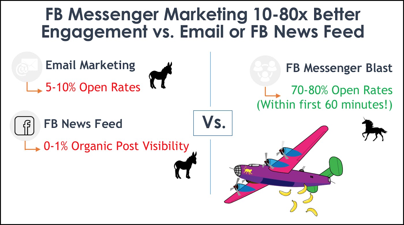 But with Messenger marketing, open rates skyrocket to 70-80% in the first hour.